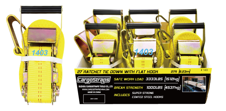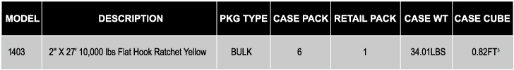2' X '27' 10,000 lbs Flat Hook Ratchet Yellow